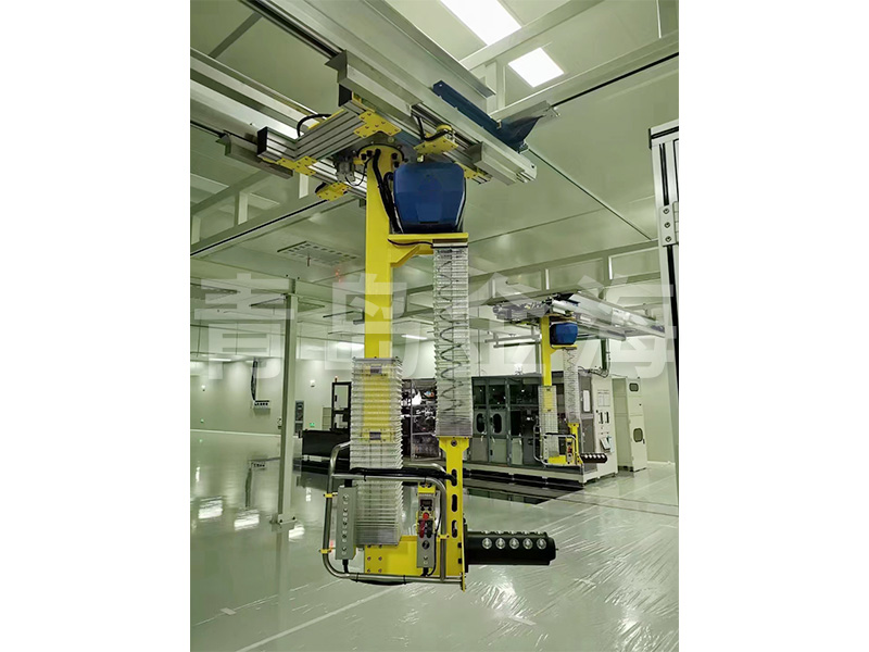 助力臂搬運系統(tǒng)由軌道系統(tǒng)、智能提升裝置、伸縮提升機構(gòu)、非標(biāo)夾具等組成。